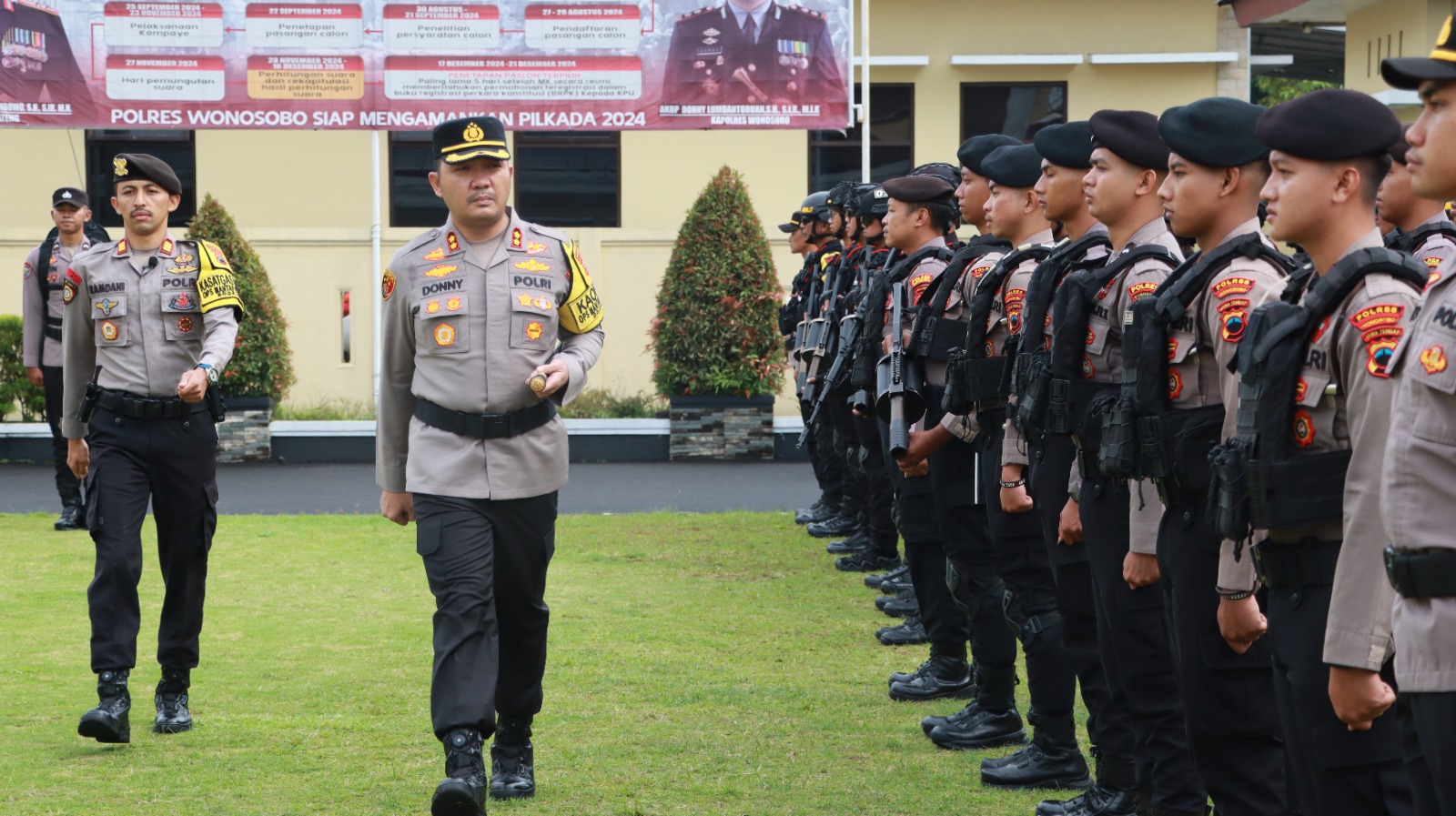 Kapolres Wonosobo AKBP Donny Lumbantoruan, dalam sambutannya menyampaikan bahwa Polres Wonosobo berkomitmen untuk menjamin kelancaran penyelenggaraan Pilkada tahun 2024 di Kabupaten Wonosobo.
