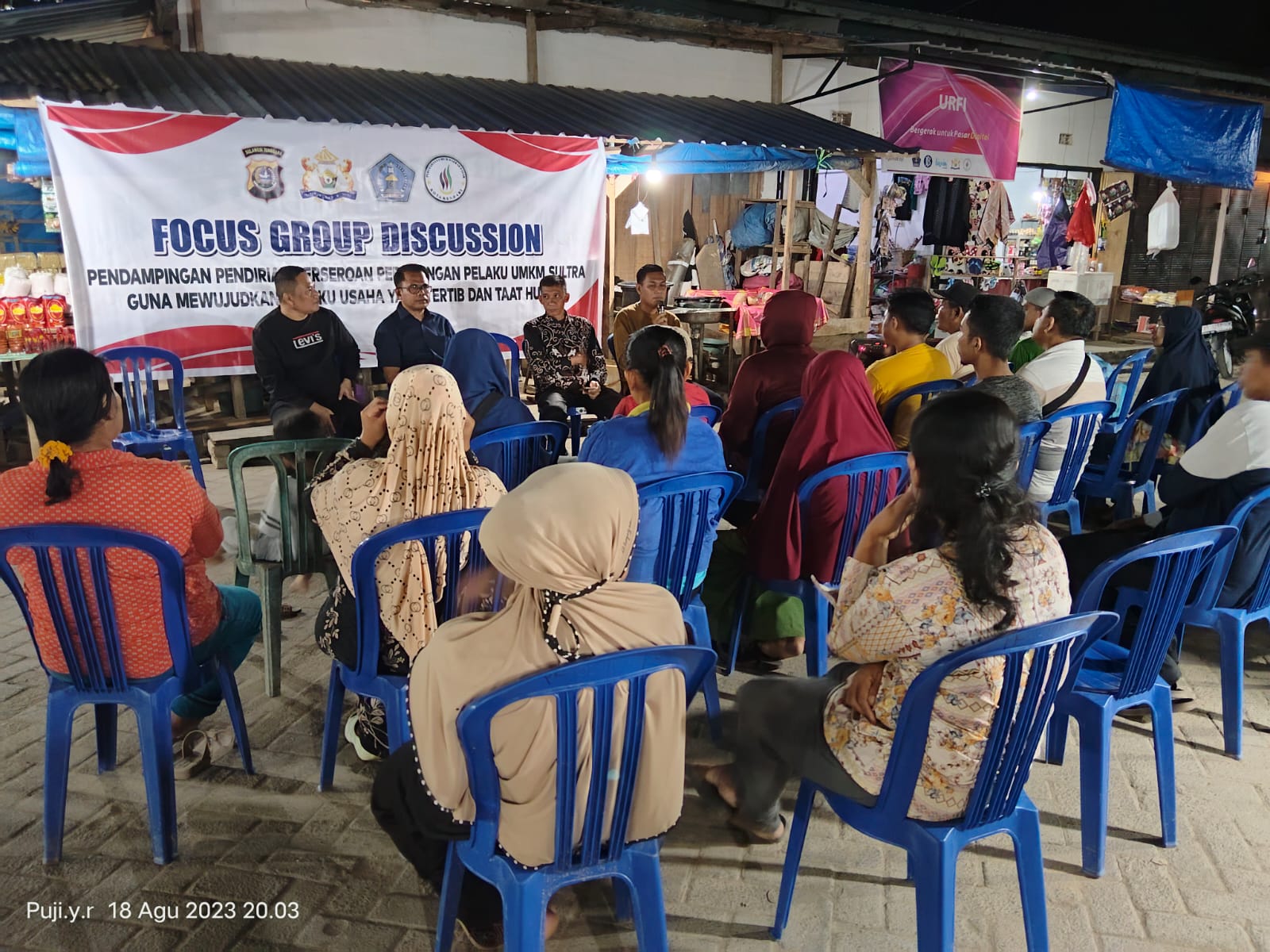Langkah awal kata Sastra, KADIN bersama dengan Polda Sultra dan Perumda Pasar Kota Kendari melakukan pertemuan dengan para pedagang Pasar Wayong melalui Focus Group Discussion (FGD) pada Jum’at malam 19 Agustus 2023. di Pasar Wayong.