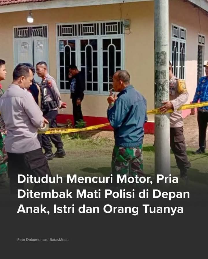 Korban, yang dituduh mencuri motor, ditemb4k di perut saat memperbaiki sandal bersama anaknya tanpa perlawanan. “R adalah seorang suami dan ayah dari dua anak yang tew4s ditembak di depan keluarga, termasuk istri dan orang tuanya,” kata Kepala Divisi Advokasi LBH Bandar Lampung, Prabowo Pamungkas, Rabu (4/12).