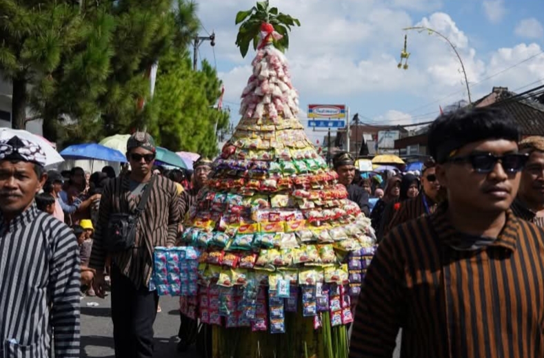 Acara dikemas dalam bentuk kirab budaya, melibatkan warga sekitar dengan berbagai penampilan khas, seperti tarian tradisional, kostum unik, reog, serta pertunjukan kesenian dari berbagai etnis Nusantara. Suasana semakin meriah ketika masyarakat saling berebut gunungan berisi makanan, sayuran, hasil bumi, dan jajanan pasar yang dihias menarik.