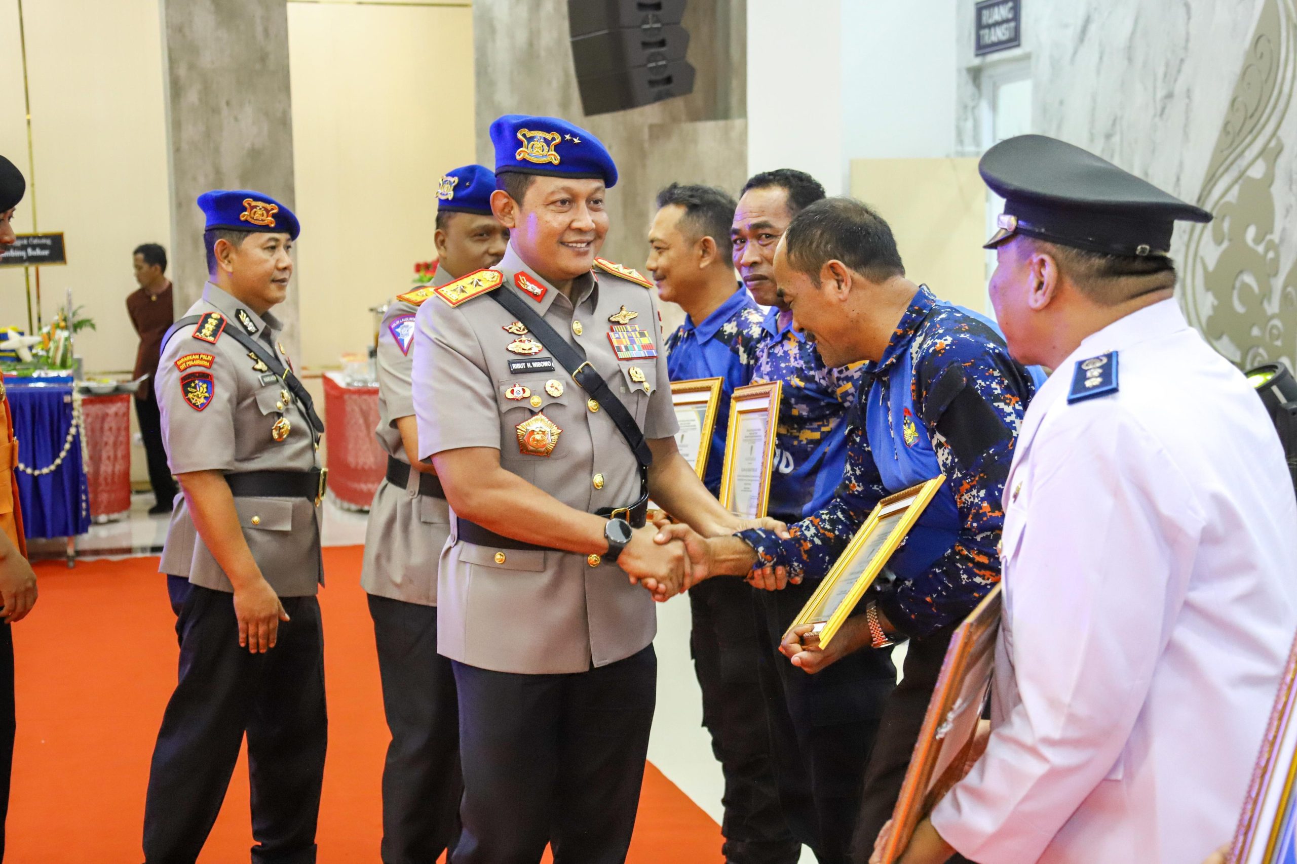 Polda Jateng-Kota Semarang|Detikpolri.com-Kapolda Jateng Irjen Pol Ribut Hari Wibowo dan Waka Polda Brigjen Pol Agus Suryonugroho dianugerahi Brevet Bhayangkara Bahari Kehormatan dari Kepala Polairud Baharkam Polri. Pemberian brevet penghargaan tersebut berlangsung dalam acara Peringatan HUT Polairud ke-74 Tahun 2024 yang digelar di Gedung Borobudur Mapolda Jateng pada hari Selasa, (3/12/2024) pagi, bersamaan dengan acara tersebut sejumlah tokoh masyarakat juga turut menerima Penghargaan dari Ditpolairud Polda Jateng.