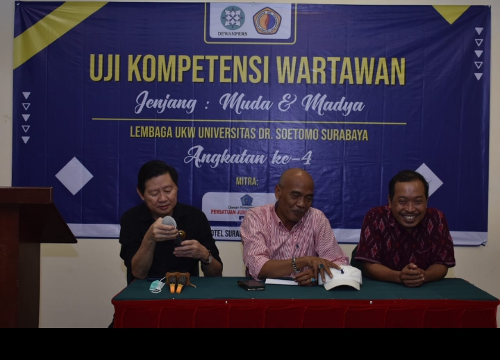 UKW berlangsung 2 hari, Senin dan Selasa 7-8/8, dipimpin para penguji Machmud Suhermono, Kundari Pri Susanti, Zainal Arifin Emka, Syaiful Anam, Wijayanto. Penguji magang, Sokip dan M. Aminun Jabir. UKW diikuti 27 peserta anggota PJI dari Makassar Sulawesi Selatan, Indramayu Jawa Barat, Grobogan Jawa Tengah, Sumenep dan Sampang Madura, Tulungagung, Kediri dan Surabaya Sidoarjo.@Red