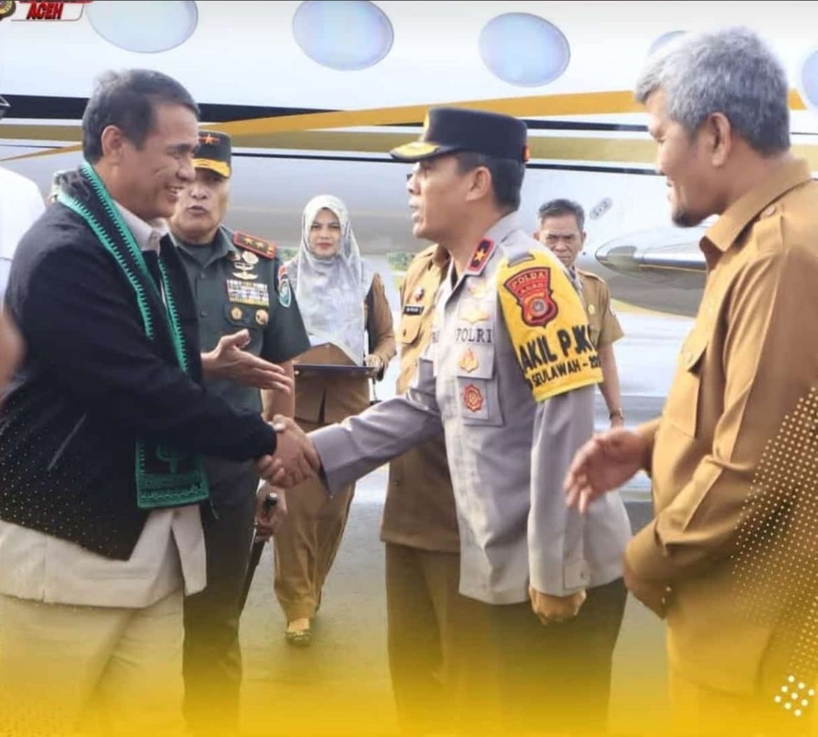 Aceh Utara|Detikpolrim.com – Panglima Komando Daerah Militer Iskandar Muda (Pangdam IM), Mayor Jenderal TNI Niko Fahrizal, M.Tr.(Han), menyambut kedatangan Menteri Pertanian Republik Indonesia, Dr. Ir. H. Andi Amran Sulaiman, M.P., beserta rombongan di Bandara Malikussaleh, Desa Pintu Makmur, Kecamatan Muara Batu, Kabupaten Aceh Utara, pada Selasa (10/12/2024).