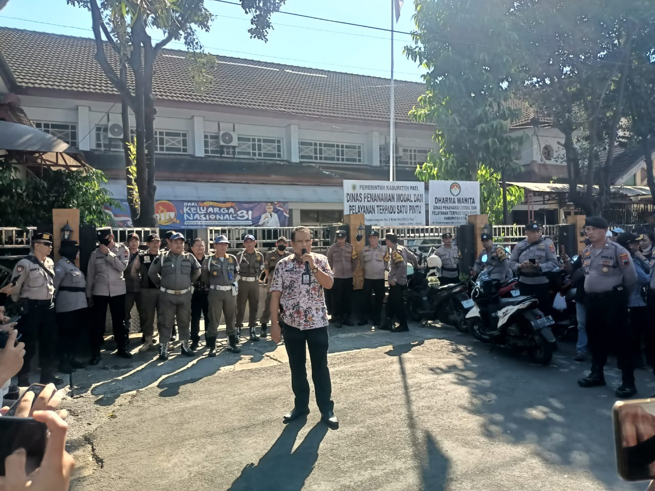 PATI|DetikPolri.com-Organisasi Masyarakat (Ormas) Mantra, menggelar aksi demo terkait dugaan Kepala DPMPTSP Kabupaten Pati Riyoso yang dianggap menerima suap perizinan Karaoke, selasa, (9/7/2024).