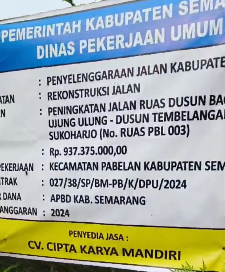 Pekerjaan jalan beton di desa baox – Sukoharjo kecamatan Pabelan menelan anggaran 930 juta yang bersumber pada APBD Kabupaten Semarang 2024, tim Pelaksana Kegiatan dari PUPR seharusnya lebih cermat penilaian pekerjaan jangan sampai ada kerjasama yang merugikan pemerintah daerah itu sendiri,Bupati Semarang seharusnya bisa menilai kinerja anak buahnya ,atas temuan di lapangan beberapa titik tim investigasi melayangkan surat ke kementrian dalam negeri,agar 5 nama di struktural PUPR Kabupaten Semarang di klarifikasi pemanggilan dengan data dokumen yang kita serahkan secara data riil di lapangan ,pungkas amin.