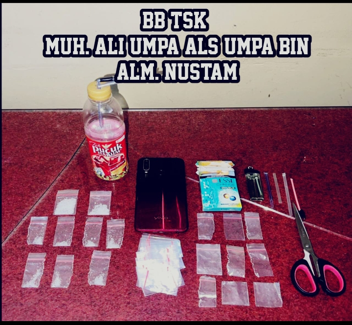 Setelah dilakukan interogasi, terlapor lelaki Muhammad Ali Umpa mengakui bahwa ia telah menggunakan, menyimpan, dan menguasai narkotika golongan 1 jenis shabu, serta berencana untuk menjualnya kepada sopir perusahaan. Atas pengakuan tersebut, dan dengan kesaksian Kepala Desa Kapoiala Baru, yaitu Abd. Majid, Muhammad Ali Umpa menunjukkan barang bukti berupa sembilan saset narkotika jenis shabu dengan berat bruto total ± 3,34 gram, serta alat isap (bong) dan barang-barang terkait lainnya.